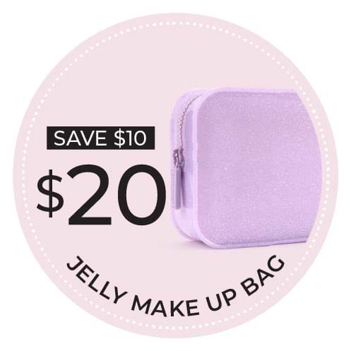 From makeup must-have and toiletreis to charging cord, hair accessories and more, the Jelly Makeup Bag fits it all while keeping things effortlessly organized