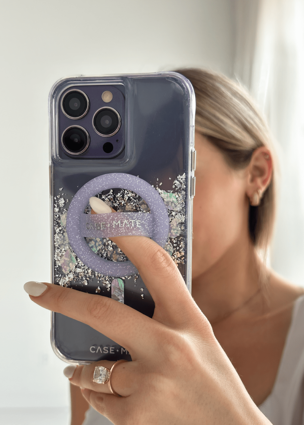 Get the perfect selfie angle with the MagSafe Loop Grip— rotate 360° for an adjustable grip when texting, calling, and taking pictures. Featuring strong built-in magnets that easily snap on and off for MagSafe accessorizing and charging.
