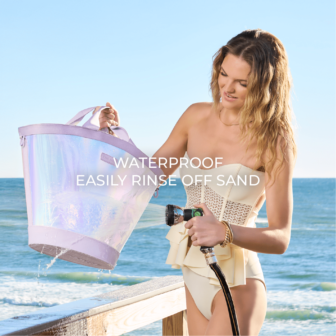 Your next beach day just got cooler! The Cooler Tote is a must-have for poolside lounging, lake day getaways, and beach trips. Its zippered insulation keeps food, up to two dozen cans of your favorite beverage, or six wine bottles refreshingly cold for over 24 hours (yes, that’s ALL day!). Its lightweight, tote design makes it easy to carry and won’t weigh you down like bulky, plastic coolers. Featuring soft handles and a removable, adjustable shoulder strap, you can comfortably carry your cooler anywhere. The flat slip-resistant base keeps it steady wherever you set it down, while the zip-close ensures everything stays secure. After a day in the sun and sand, the waterproof material easily rinses off to keep it looking good as new and ready for your next trip.