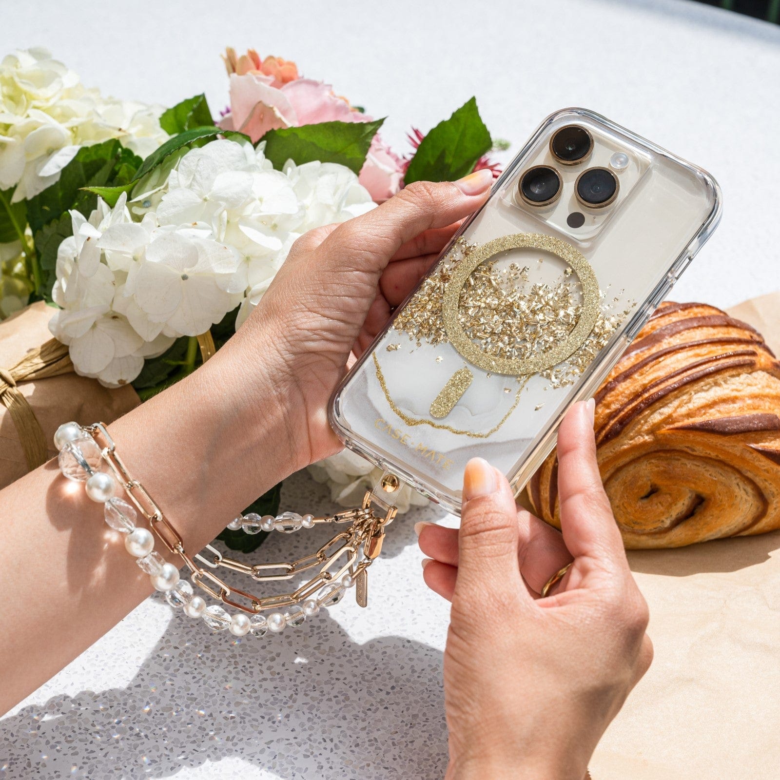 Keep it classy— Karat Marble MagSafe Phone Case for the iPhone 15 Pro features white marble and gold accents for a modern twist on this timeless look. We know how much you love your phone, so feel confident knowing it’s safe with 12-foot drop protection while strong built-in magnets allow for easy MagSafe accessorizing and charging.